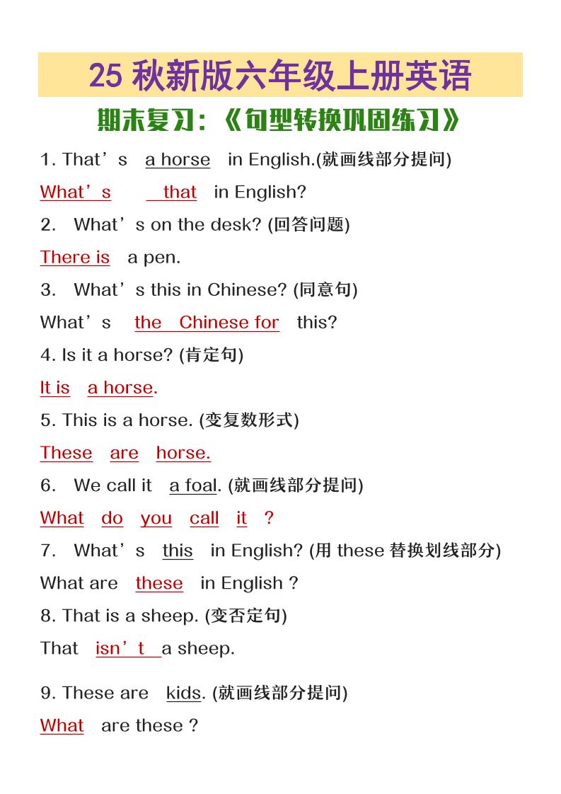 【2025秋新版】六年级英语上册《必考重点句型》错过就太可惜了!