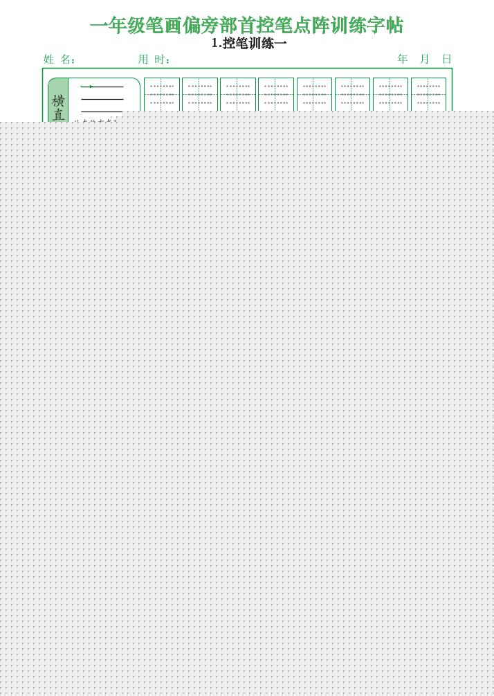 一上语文笔画偏旁部首控笔点阵训练字帖(12页)