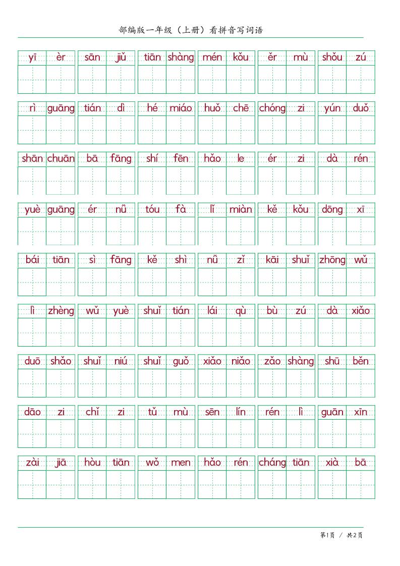 新一上语文教科书里的看拼音写词语(16页)
