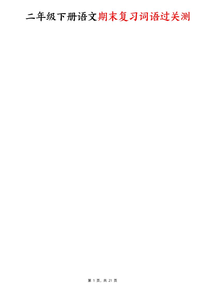 二下语文期末复习1-8单元重要考点默写单(空白+答案16页)