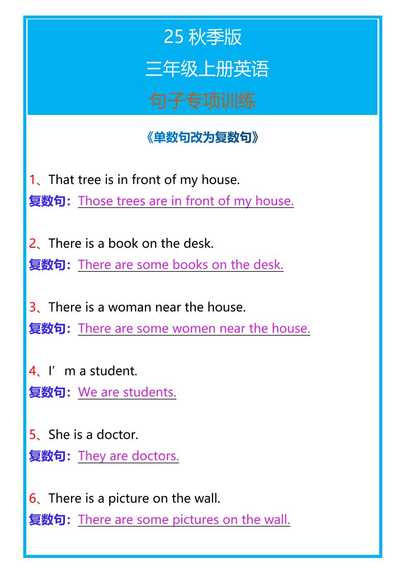 25秋人教PEP三上英语每课一练小纸条34天(含答案25页)